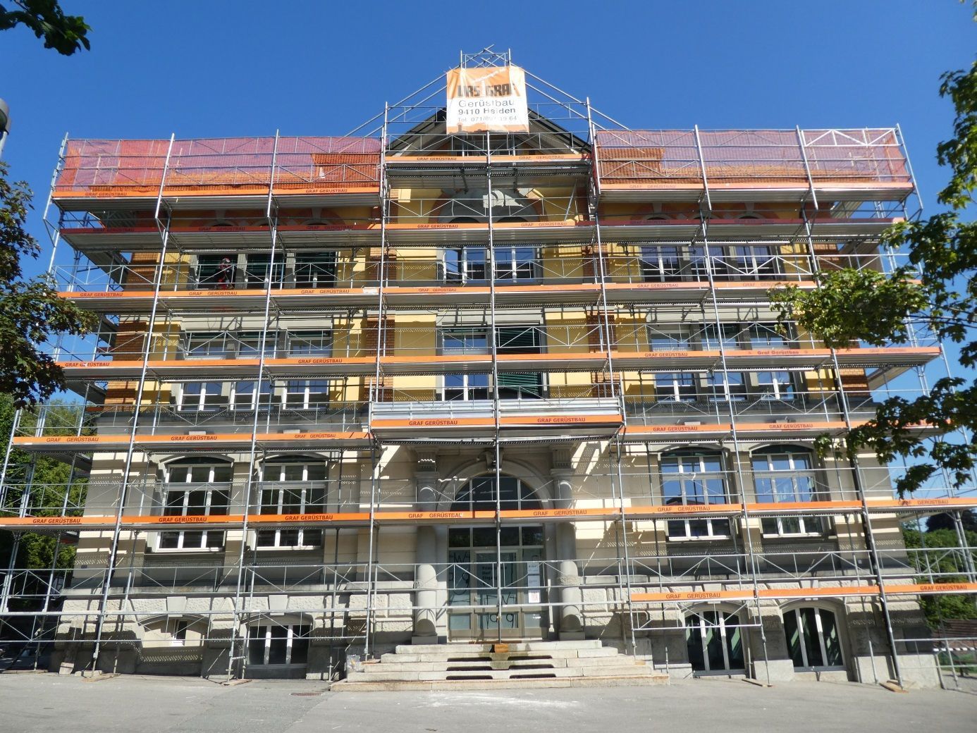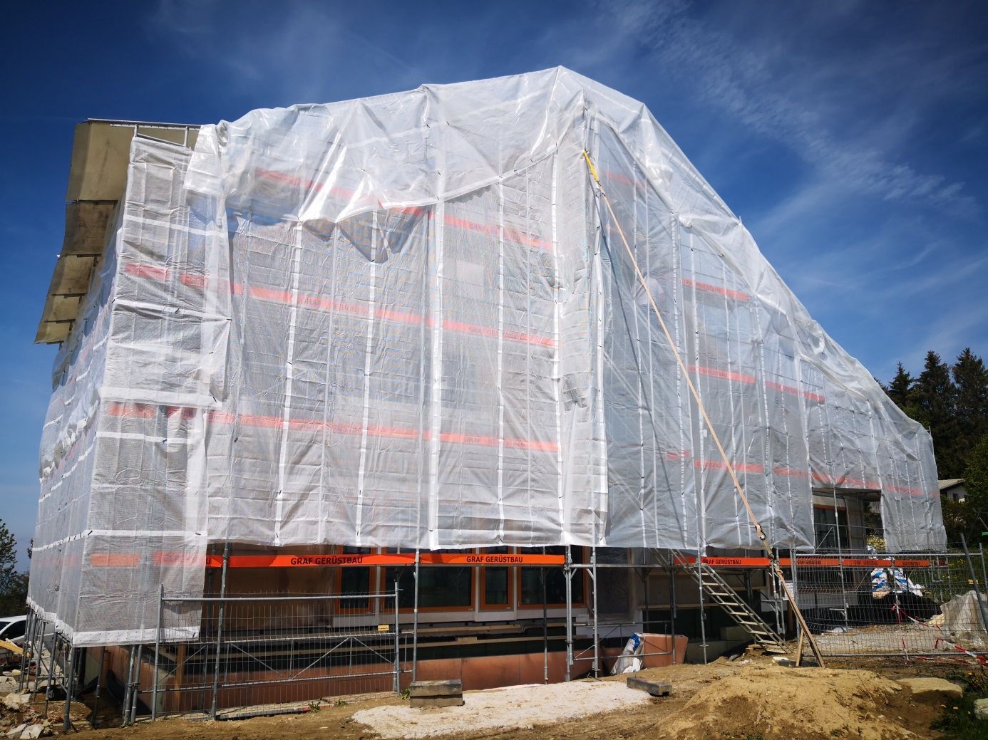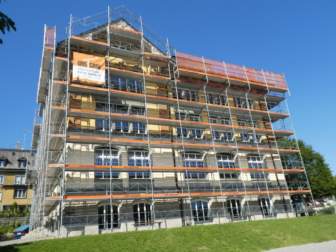 Optimale Arbeitsabläufe bedürfen der Installation eines soliden Fassadengerüsts. Es gewährt Sicherheit für alle am Bau beteiligten Handwerker. Urs Graf-Gerüste sind gepflegt und lassen ein Objekt schon während der Bauzeit schön erscheinen.