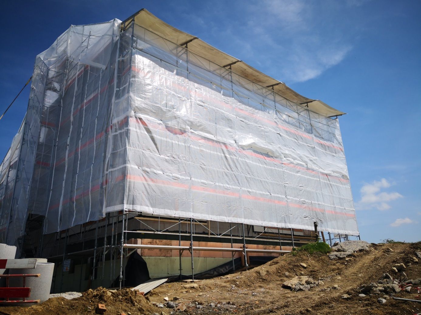Die umfassende Sanierung im Winter verlangt eine spezielle Gerüstverkleidung, welche die Sicherstellung der Wetterfestigkeit und der Temperaturkonstanz gewährleistet. Die Fassadenverkleidung ermöglicht so allen Handwerkern, Arbeiten wind- und wettergeschützt termingerecht auszuführen.